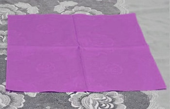 - Lift the corner of the napkin on the back side as indicated in the photo and pull the corner up. Hold the rest of the napkin so that its shape does not fall apart.