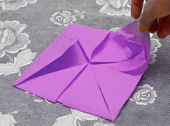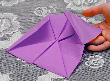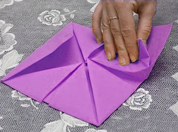 - Turn over our napkin and again bend all the corners in the middle.