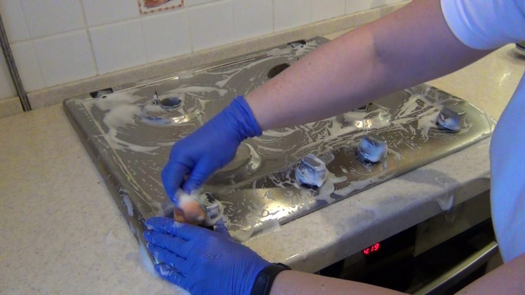When all of the above steps are taken, we move on to washing dishes in the kitchen and stove. Then, if you have a tile, apply a cleaning agent to it and leave it for a while. And move on to cleaning the bath.