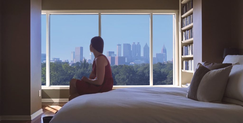 The sun hits my eyes in the morning, but you don’t want the dusk in the apartment? So it’s worth lowering the curtains only to half the window, which will protect you from direct sunlight.