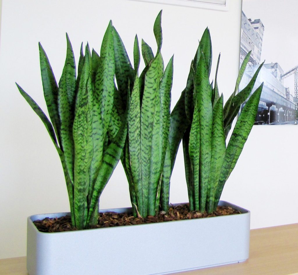 In another way it is called sansevieria. Such a plant perfectly withstands cold, so it can often be seen in the cold lobby in cinemas, restaurants or cafes.
