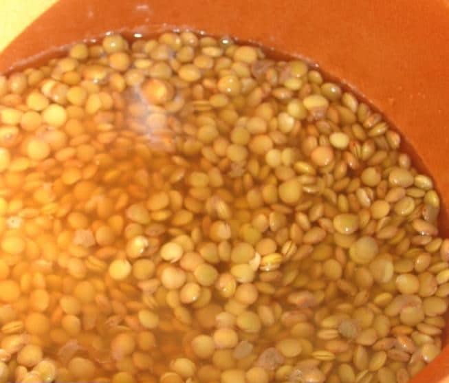Lentils should be washed well and soaked overnight in a bowl of water. After rinse it again and put on the boil. Cook the lentils on moderate heat, and when the water in the pan boils, then set the minimum heat.