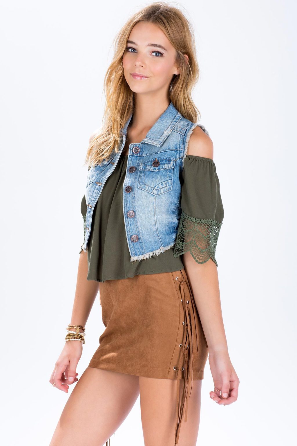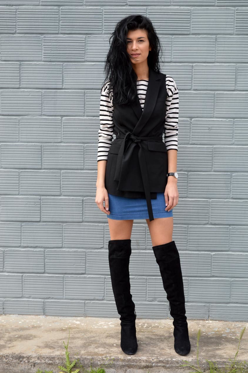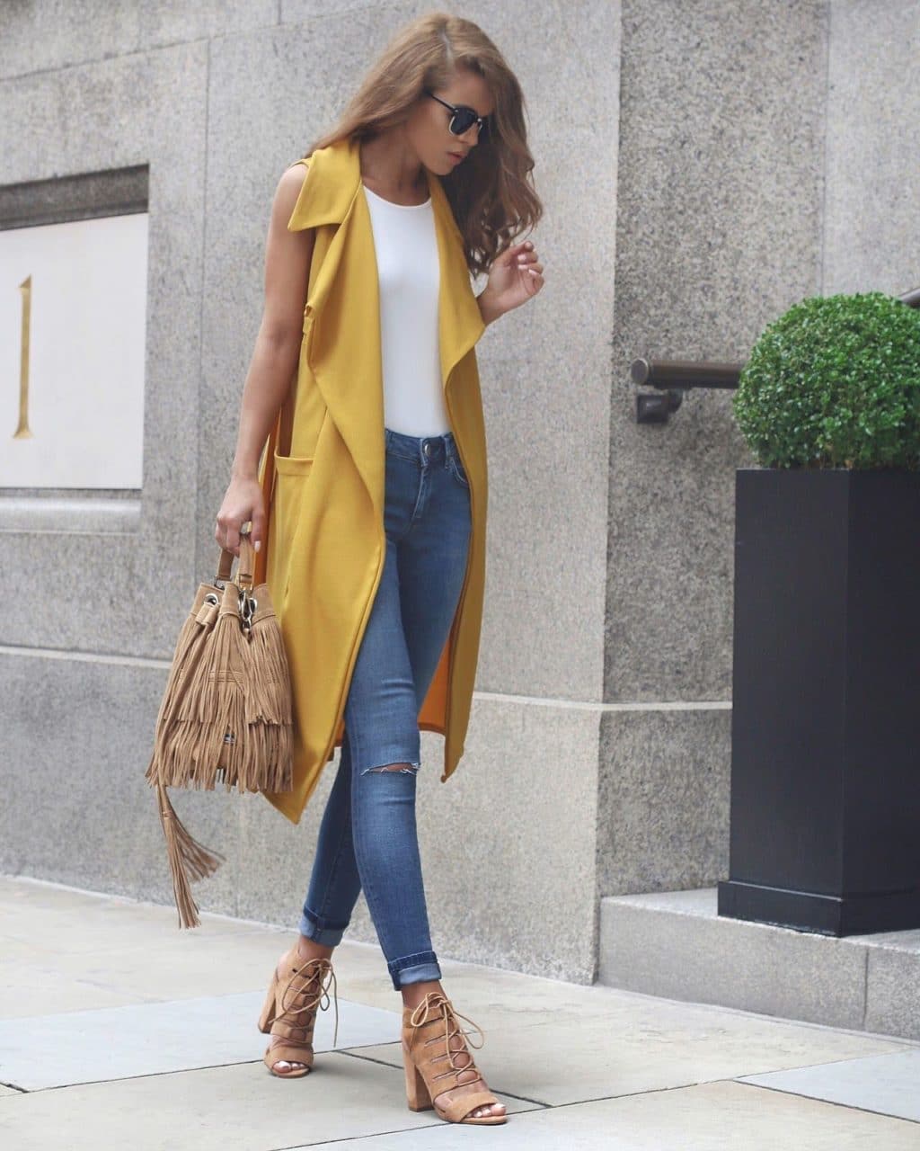 And, throwing a denim vest on the dress, your outfit will be light and laid-back.