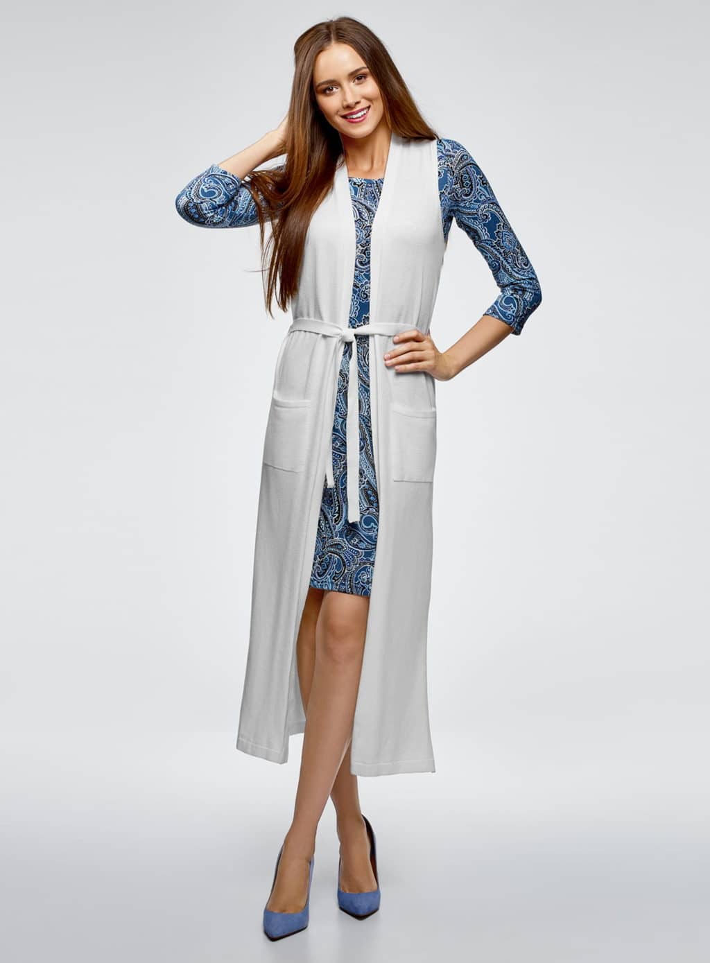 That is why he is present in the wardrobe of our fashionistas. Jackets, vests and cardigans are perfectly combined with any clothes, and shoes that is why it looks appropriate in business, evening, as well as everyday style.