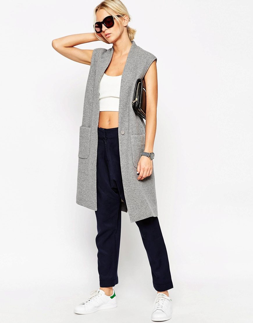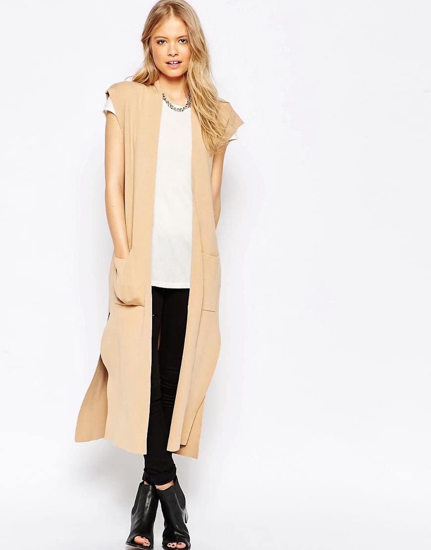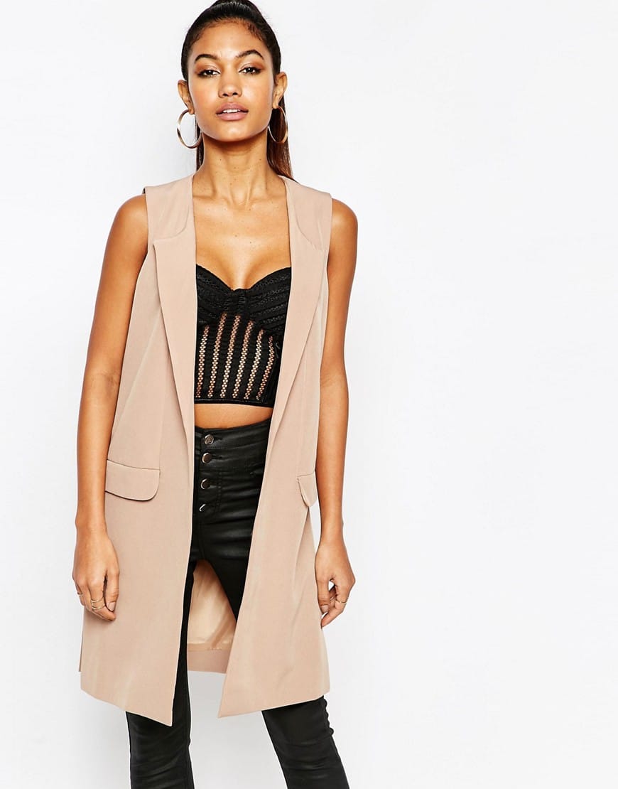 An elongated model of a sleeveless jacket looks spectacular on tall girls, as it visually lengthens the silhouette. And for girls of short stature, it is better to choose a shorter model.