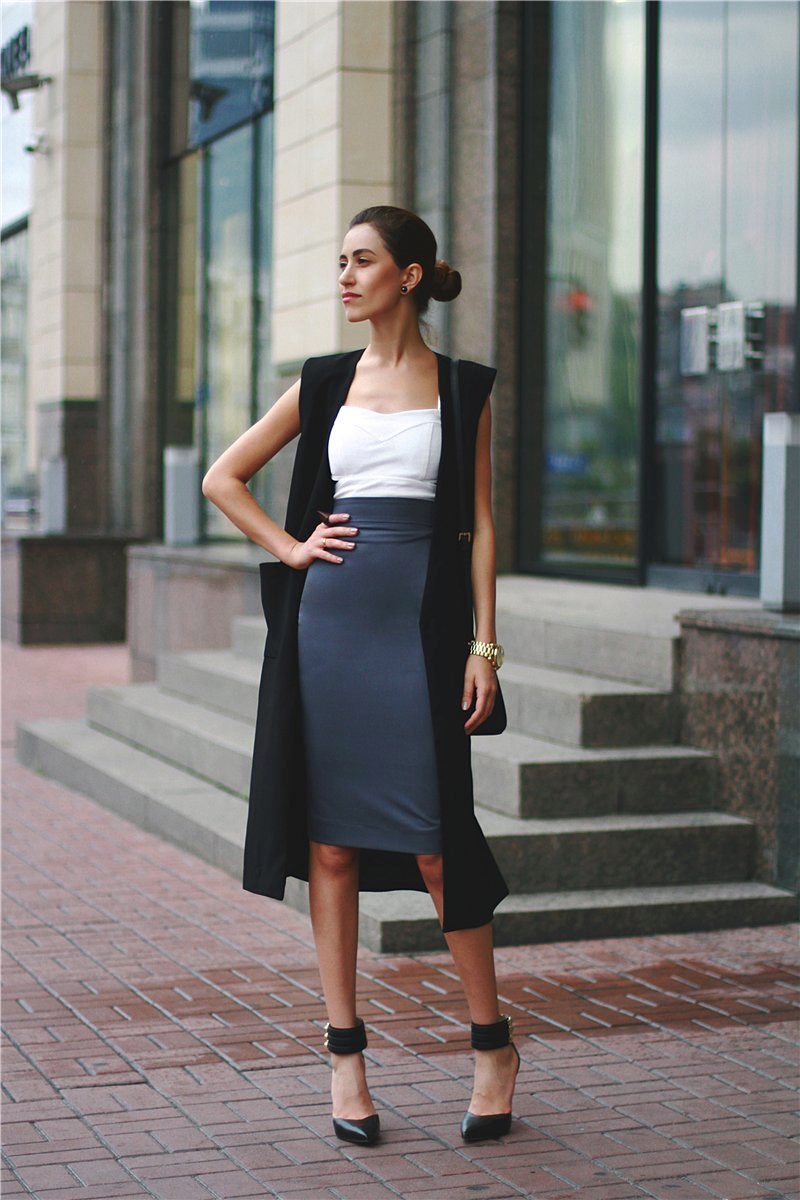 In a business style, the vest is appropriately combined with skirts and trousers.