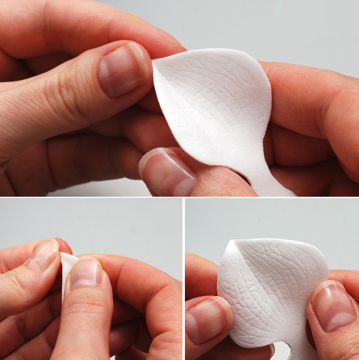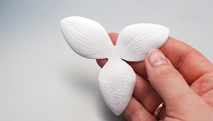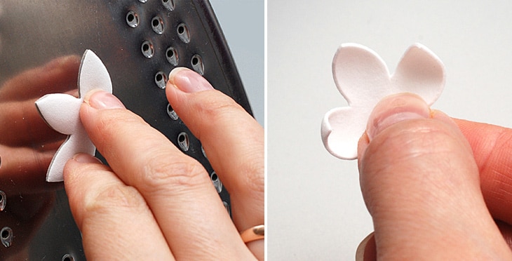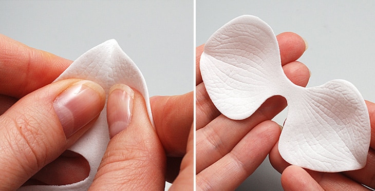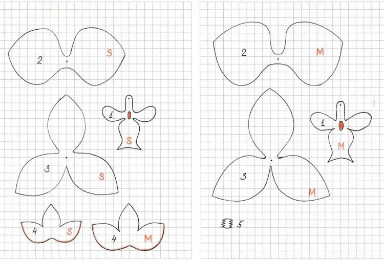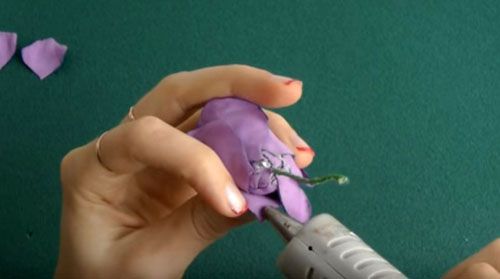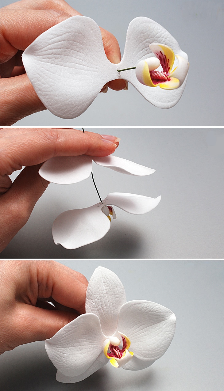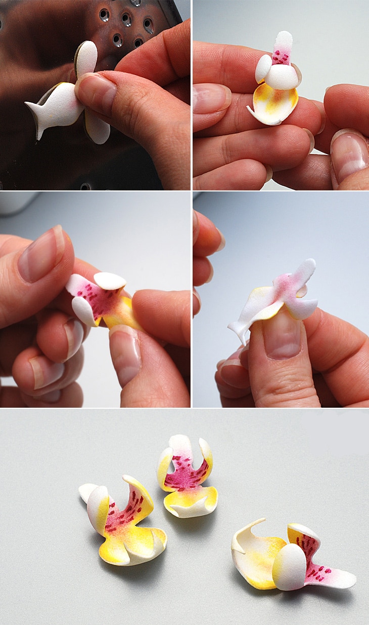 Each tip of the petal should be pulled out a little, as if sharpening it. Next, we continue to work with details, forming sepals in the same way. And in order to properly make the lip of an orchid, you need to attach it with the front side to the iron, and then form a groove on it, as indicated in the photo.