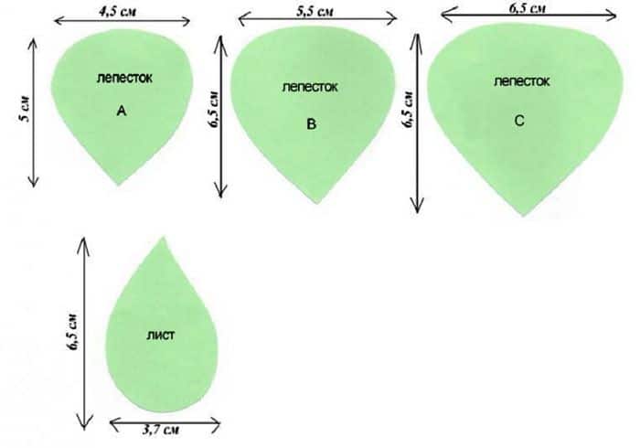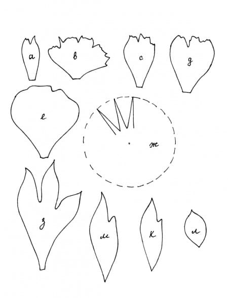 We form a pattern of plain paper. To do this, simply draw future petals on paper or print our photo hint on a printer. When the blanks are drawn, proceed to cutting them, where you should be able to: