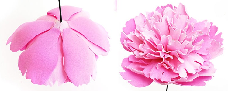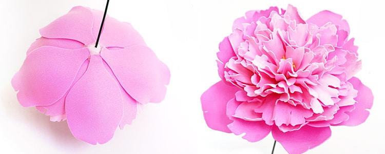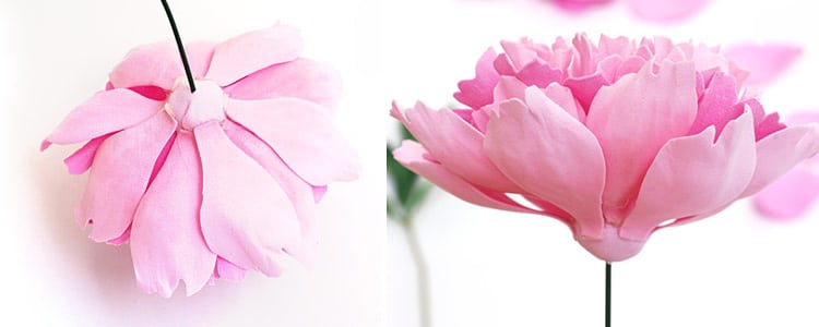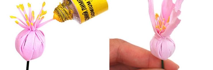 You need to color your petals so that the color on the petal is darker towards its edge and base. This way we get more realistic flowers. If the petal is dark pink, then use a dark pink paint. Petals need to be painted on both sides.
