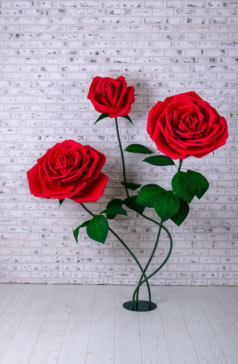 We will need a material with a thickness of at least 1 mm to make the craft voluminous and strong. Colors: dark green, dark pink and light pink. You will also need green isolate, water-based paints, durable wire, glue gun, and any decor to form the core of the flower.