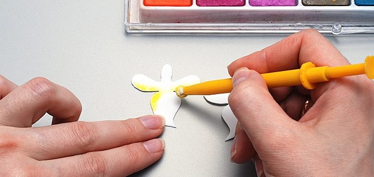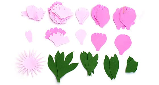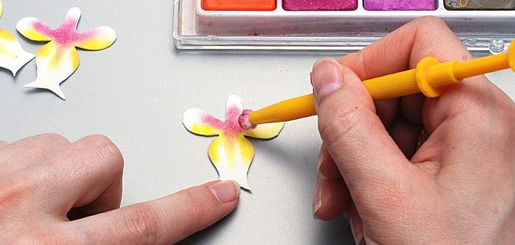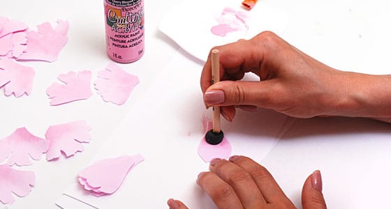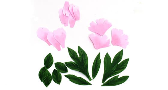 When your petals and leaves are cut, you need to paint them with acrylic paints, making the color darker to the edges and base.