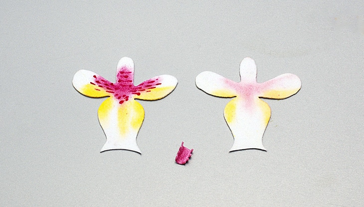 When the painting is left behind, then we wear dots on the petals, imitating the real pattern of orchid petals. The following photo shows how you should get a petal from the front and from the back.