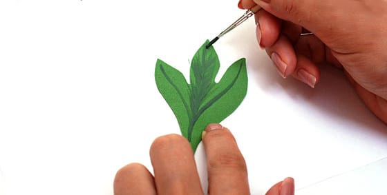 And then move on to painting the leaves. On one side of which, you need to draw veins, like a real plant. See our photo hint.