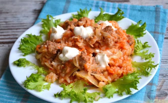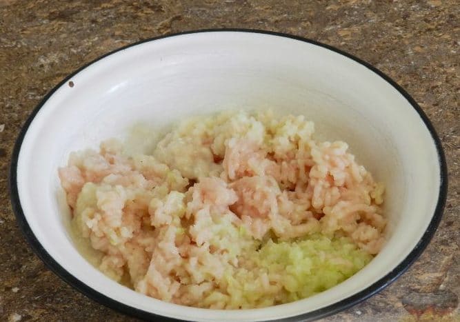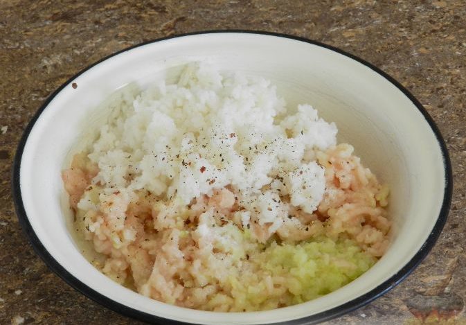 Your mincemeat should be of two types: pork and chicken. We start our cooking with rice. It must be washed and filled with two glasses of water. Cook the rice until cooked, and then put it in a dark place to allow the rice to cool faster.