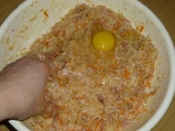 Mix the minced meat, onions and carrots, cabbage and add salt, spices and an egg. Knead the minced meat with your hands well so that there are no lumps left.