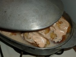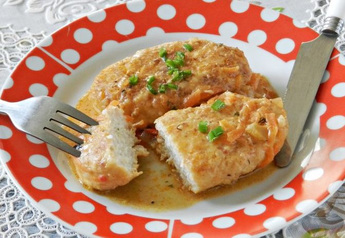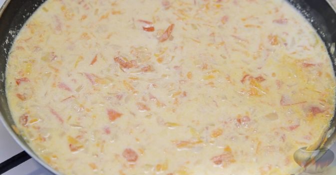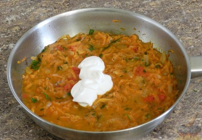 Mix 5 tablespoons of sour cream with 1 glass of water and add to the vegetables. Salt and pepper to taste.
