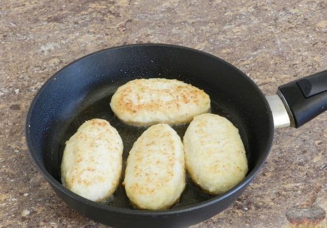 Now we form our lazy cabbage rolls from minced meat and roll them in flour before frying. In a preheated oil in a pan, you must fry the lazy cabbage rolls on both sides until golden brown.