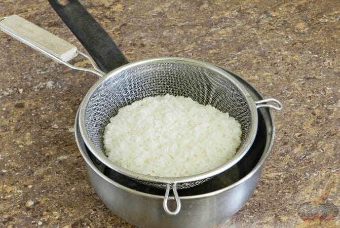 Rice should be washed under cold water and boiled until tender in slightly salted water. When the rice is cooked, it must be cooled.