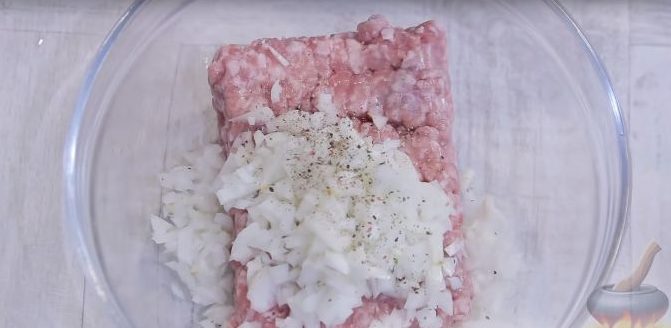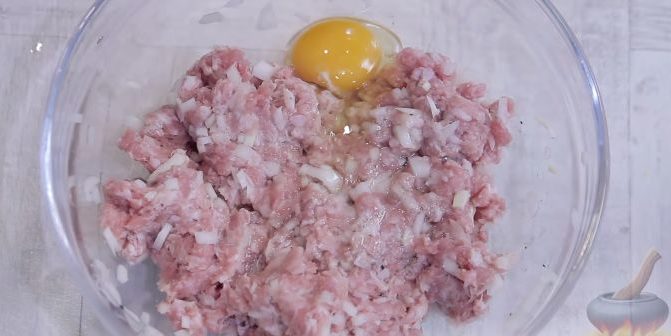 Then finely chop the onion, add minced meat, salt and pepper to it. Knead the minced meat well and add the egg, cabbage and rice to it. Again, mix everything well to get a homogeneous mass.