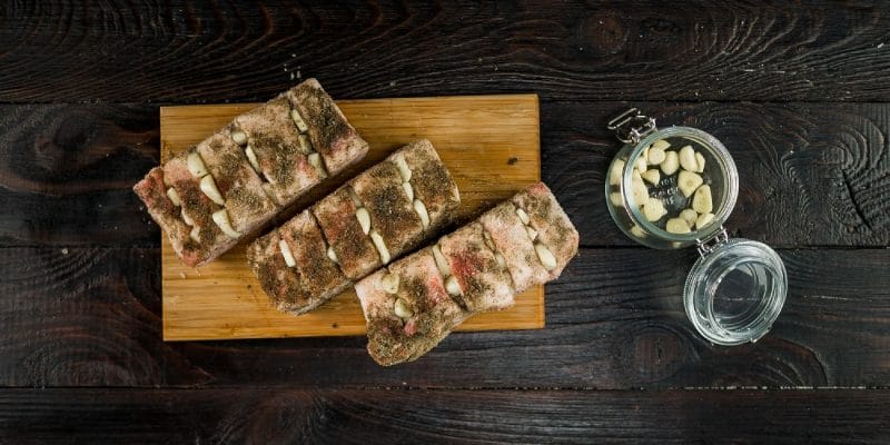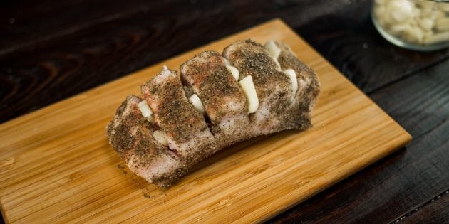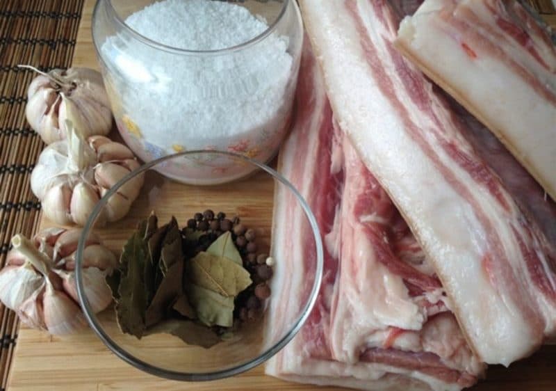 Insert garlic into thin slices into cross sections. Then you need to put the fat in a bag and pour all the salt that you have left into it. Put the lard in the refrigerator where it should be at least 4 days old.