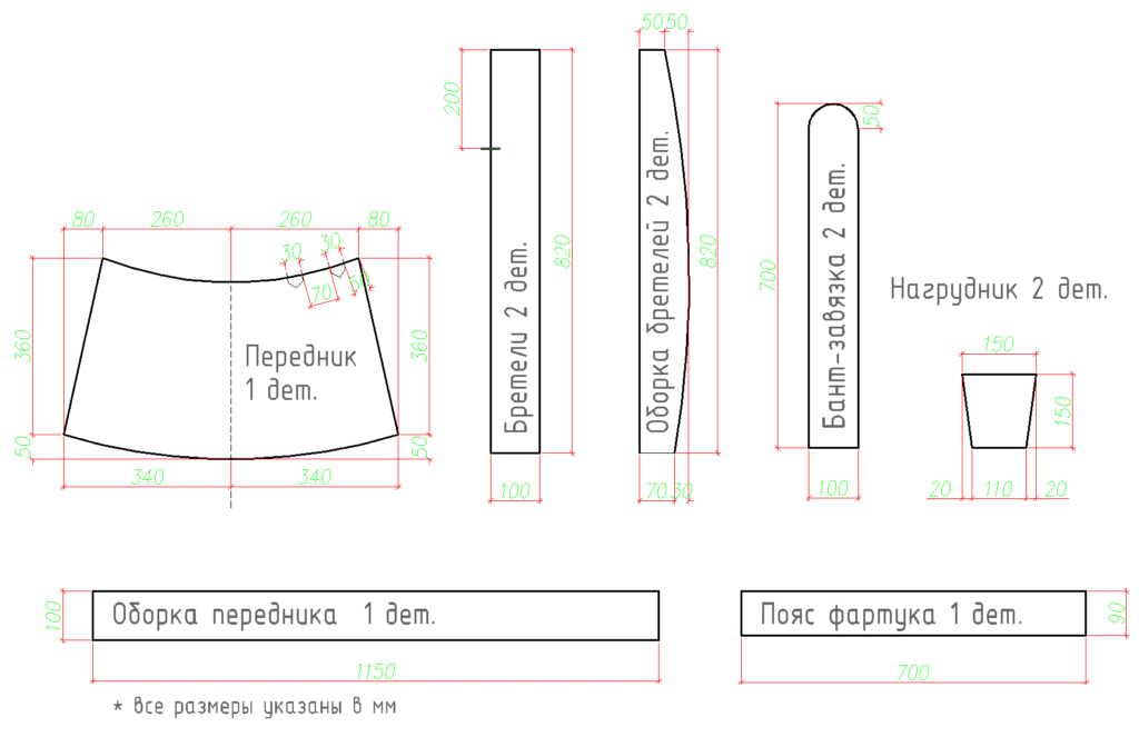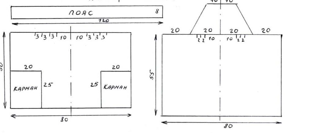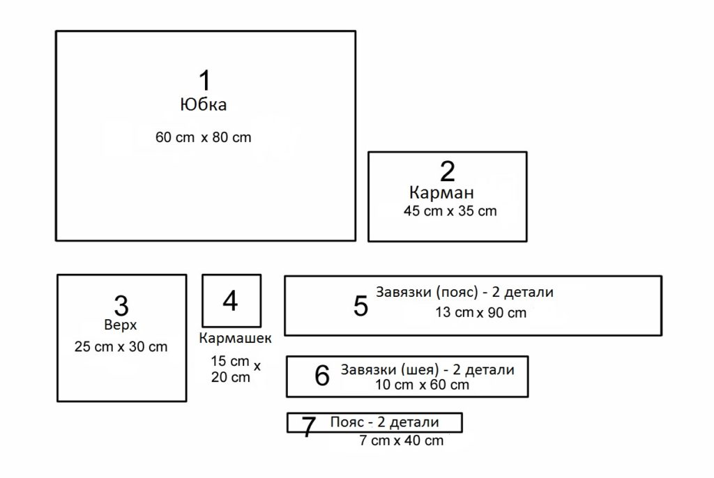 - When the measurements are ready, draw the details on paper according to the diagram with your sizes, and then transfer the drawing to the fabric and cut out the necessary details. Do not forget to leave room for allowances of 1.5 - 2 cm.