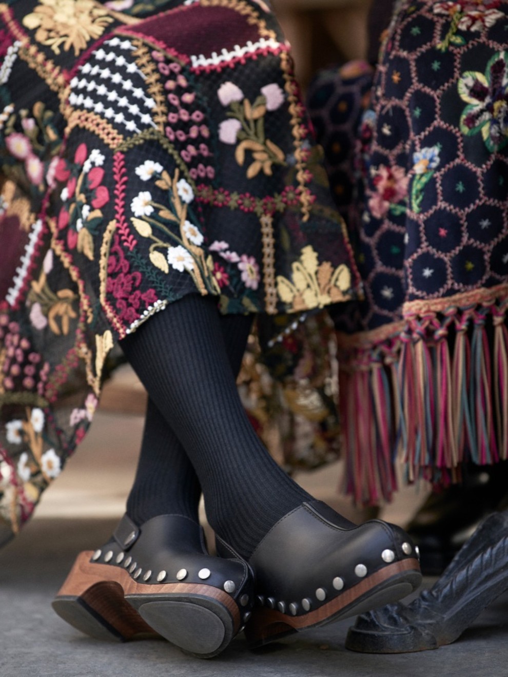Despite the fact that the clogs are quite massive and even rough shoes, it fits perfectly on dresses. Even if you decide to choose a dress on the floor, a clog with a heel will perfectly complement it, you just need to choose the right color for them.