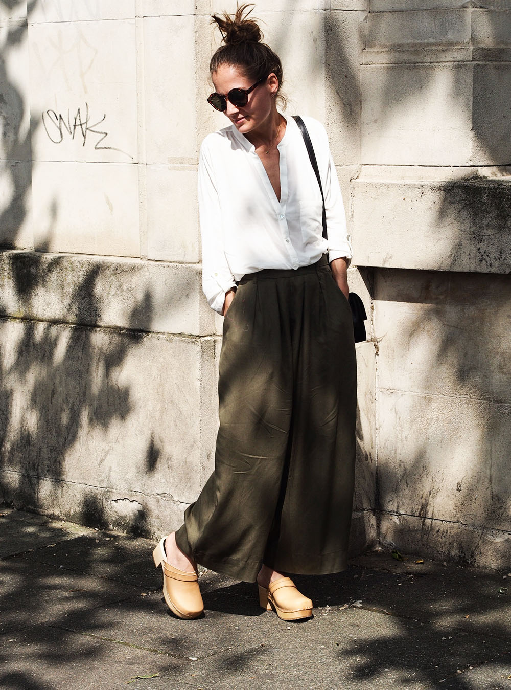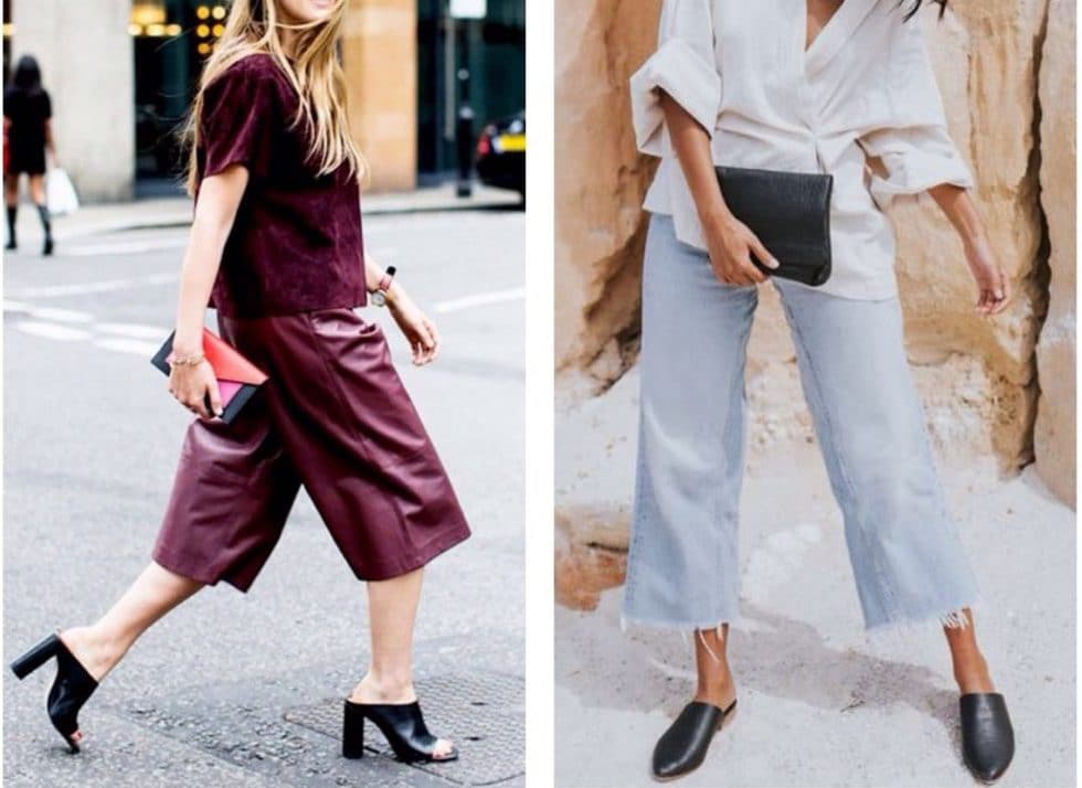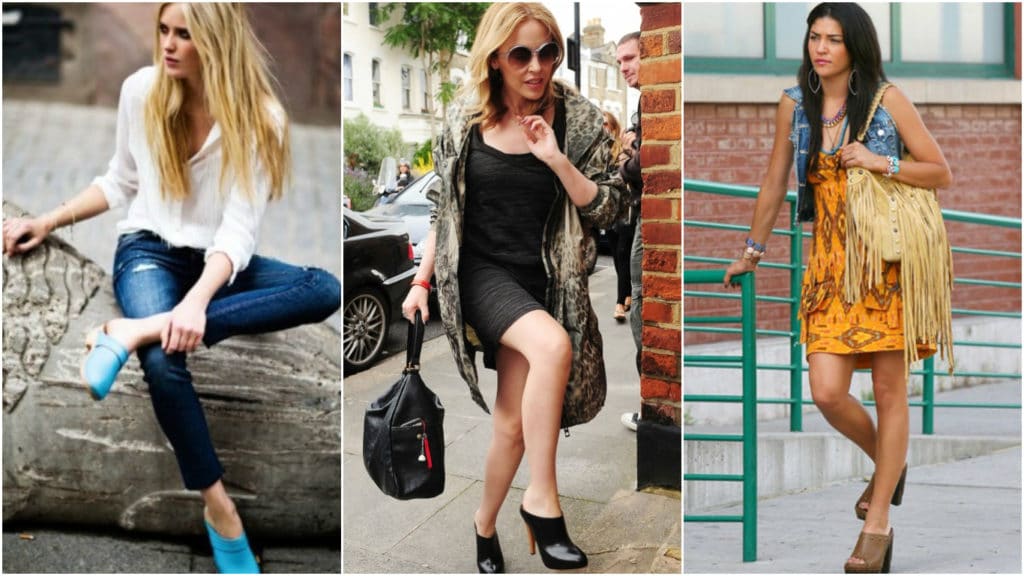 Culottes, palazzos, leggings, as well as shortened and narrowed models of trousers are perfectly combined with any kind of clogs. Of course, remember about winter models with fur. Such models should be selected only for warm, classic trousers.