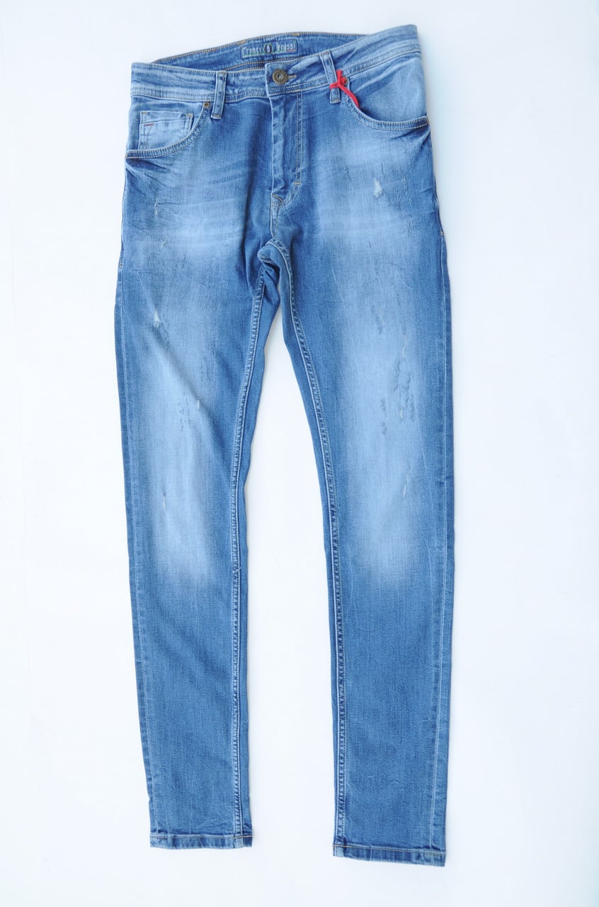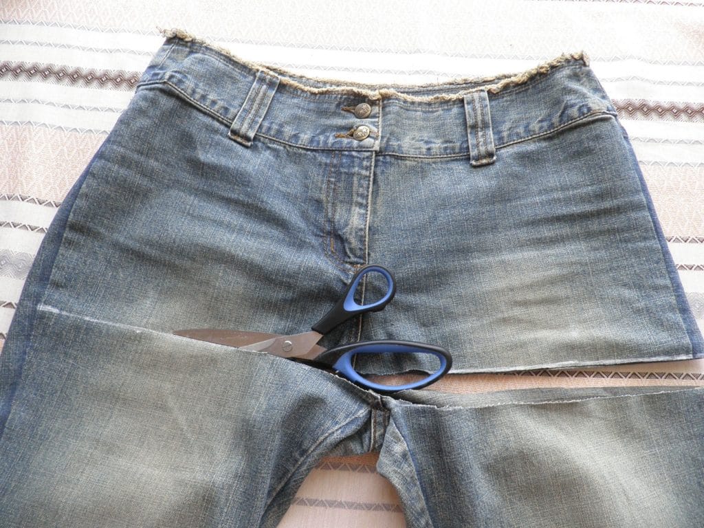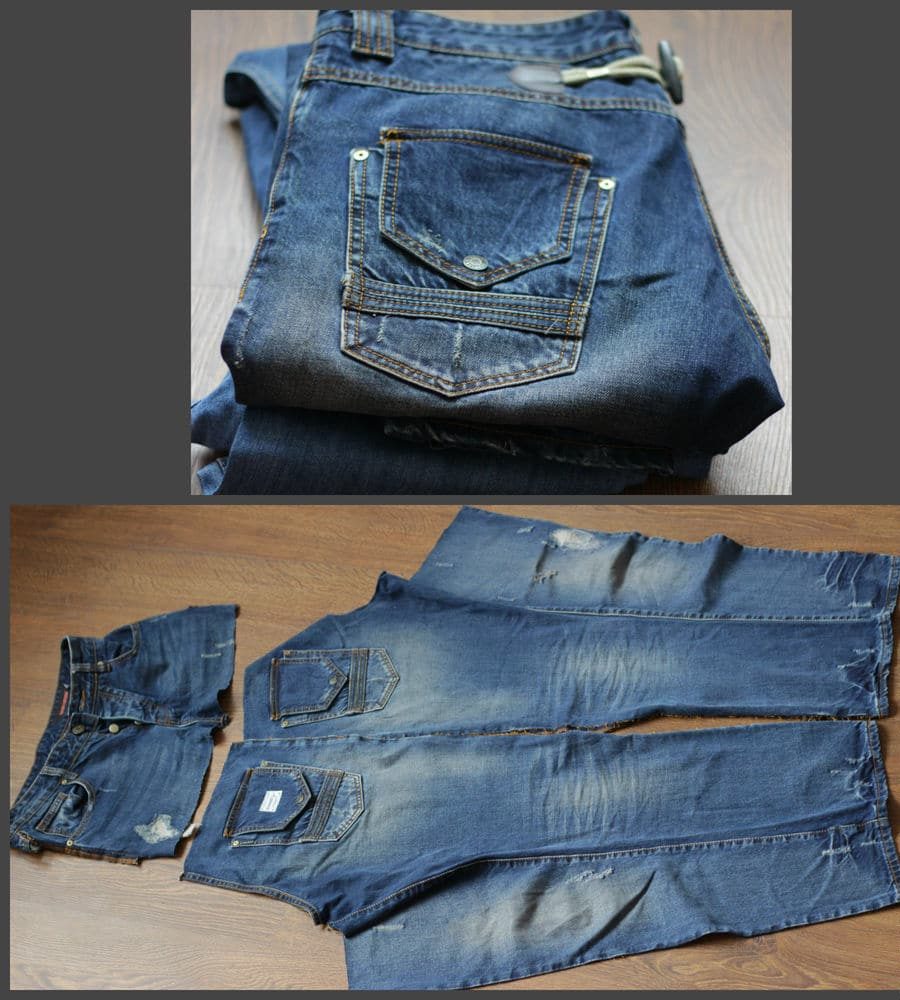 And so let's break to the patterns of our details, first we cut off the upper part of the jeans and cut along the side seam so that we learn such details.