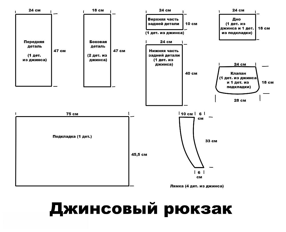 And when jeans are available, everything is prepared for the pattern of details, it is worth deciding on the size and design of our backpack.