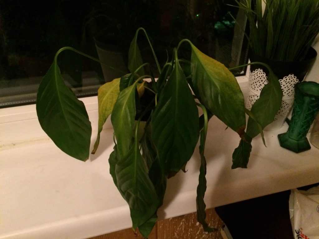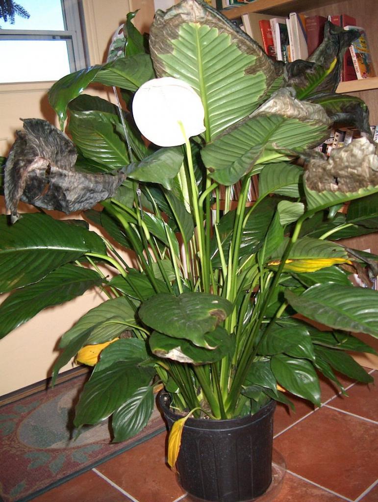 Spathiphyllum may blacken from an overabundance or lack of water. If you water the plant too much and the soil does not have time to dry out, then the leaves of the plant begin to darken, and then blacken.