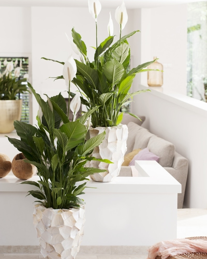 Spathiphyllum belongs to the aroid family. It has a specific flower shape, which resembles an ordinary leaflet, but is characteristically white or slightly cream in color. The core of the flower is a dense process of about 3 centimeters long, which has a pale pink, almost pale color. And the leaves of spathiphyllum are hard and ribbed.
