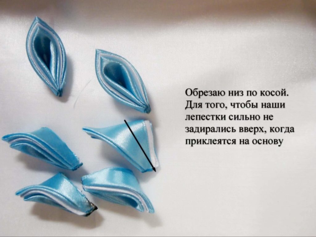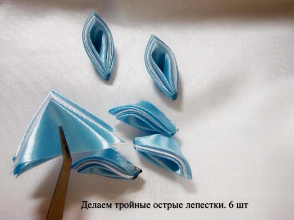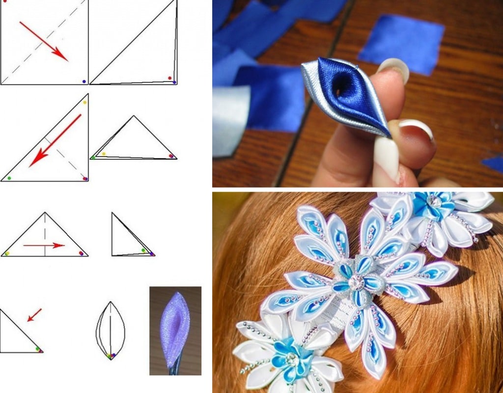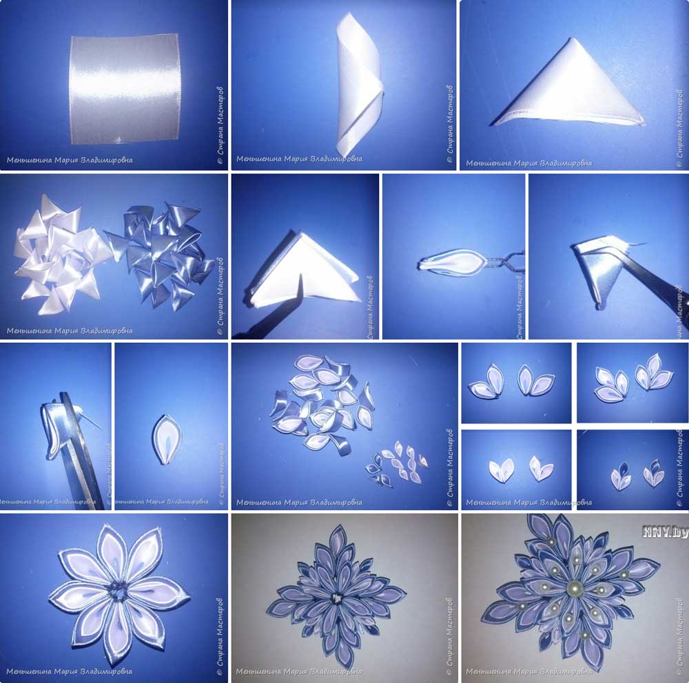 There are many methods of kanzashi execution, here are some schemes with a detailed description of step-by-step work.