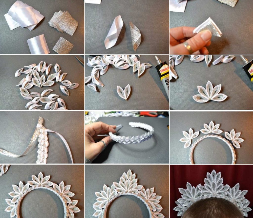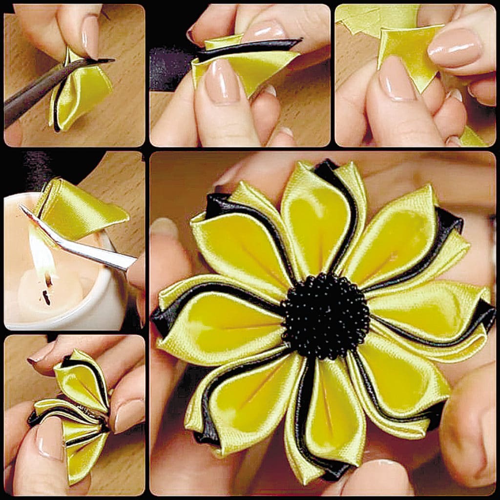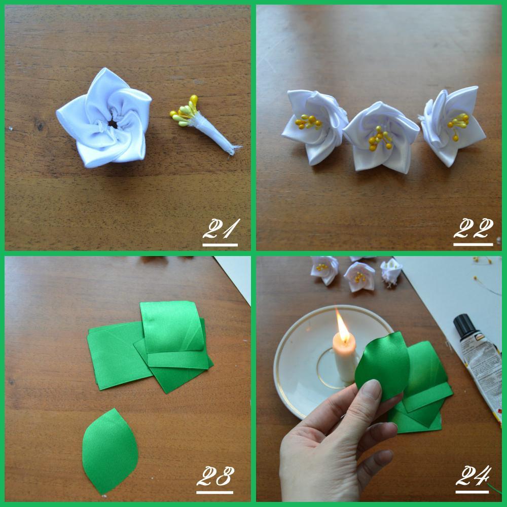 There are many methods of kanzashi execution, here are some schemes with a detailed description of step-by-step work.