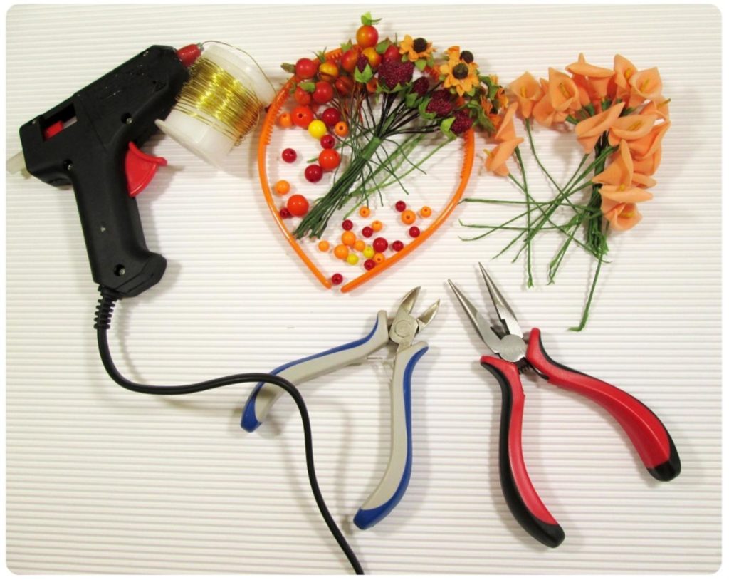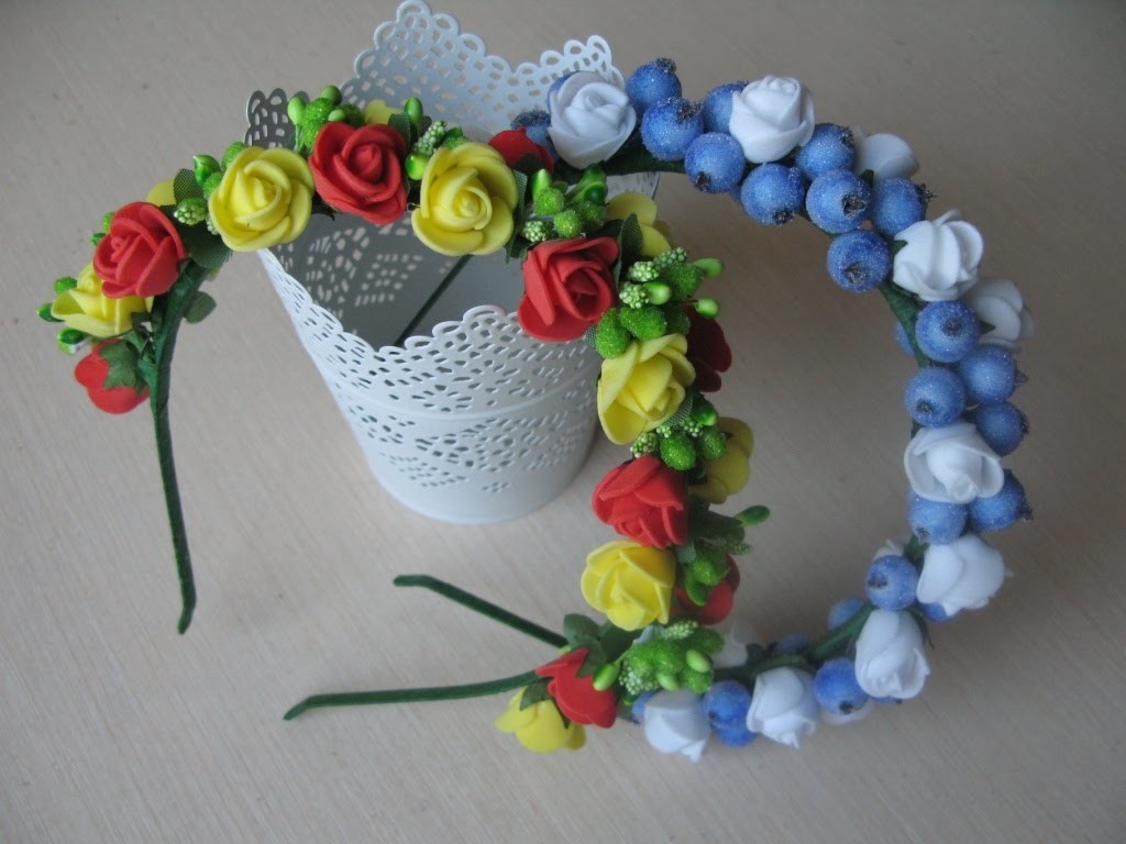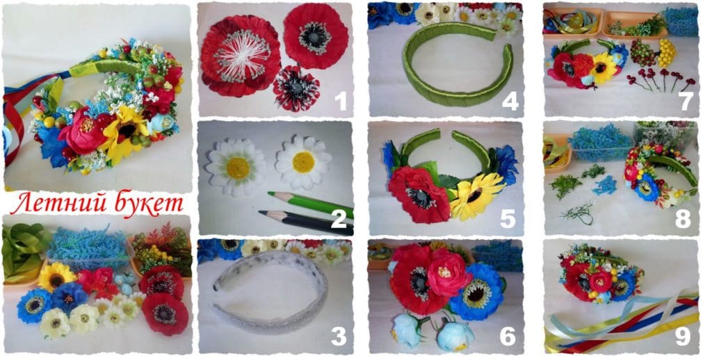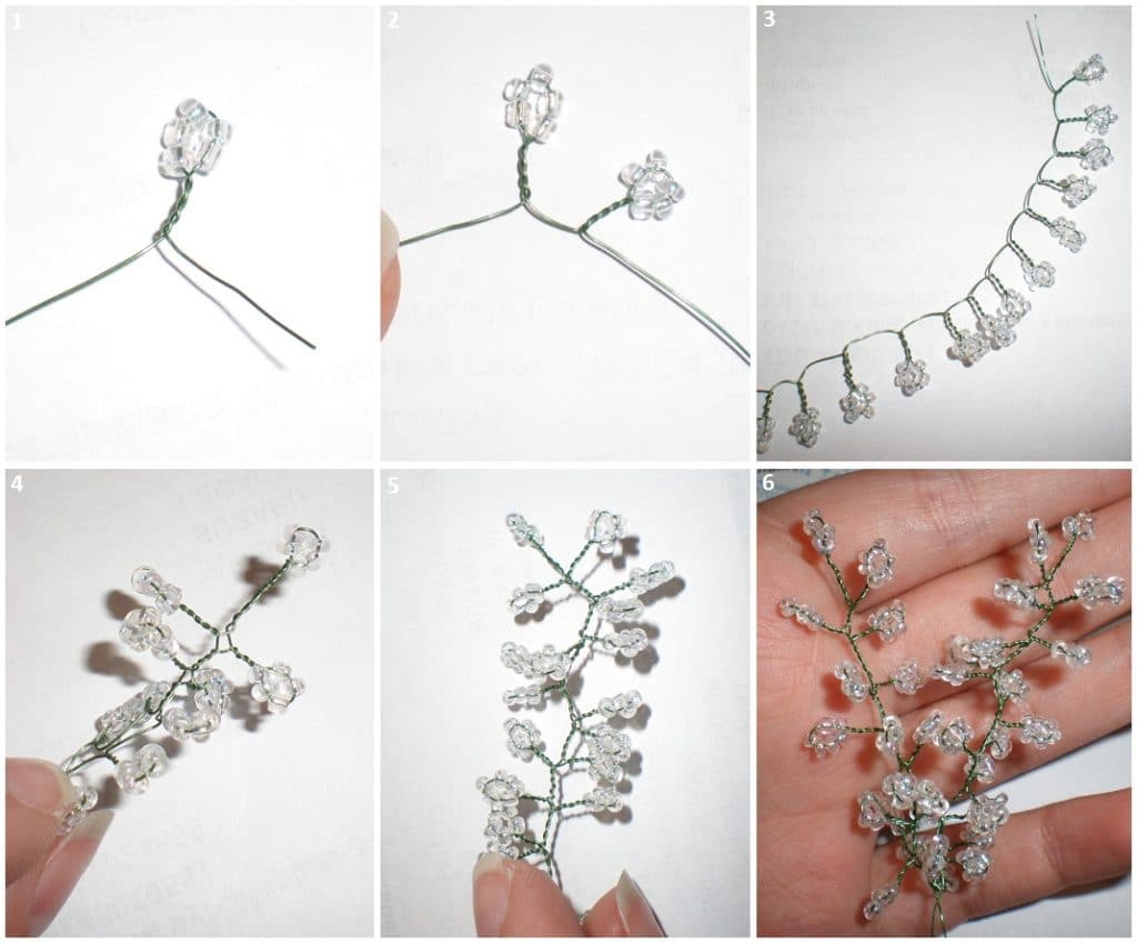 As an option for attaching to the hair, there may be a hairpin or comb. You can easily attach the finished twig to the rim with wire, or glue it.