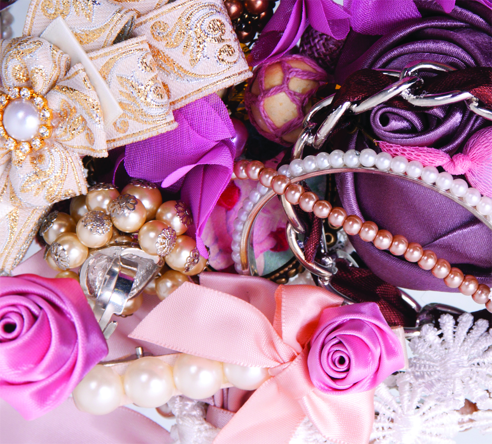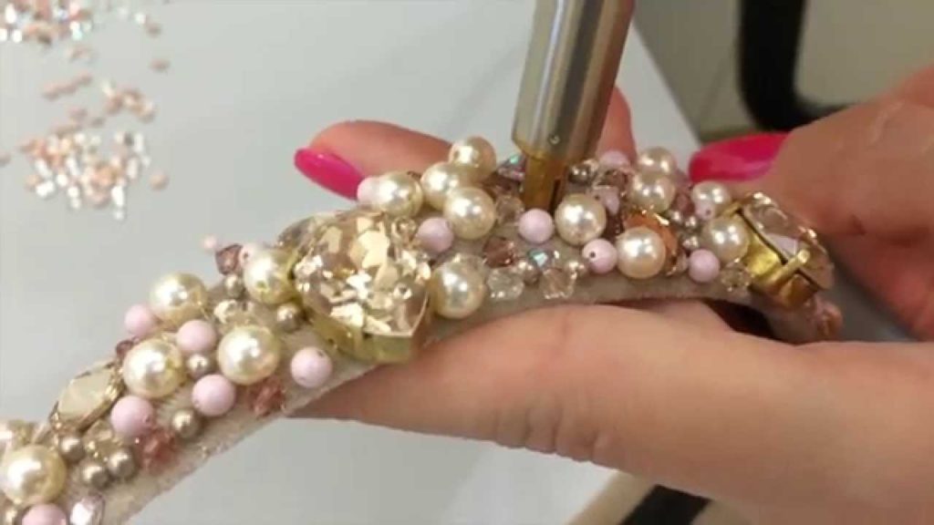 One easy way to create a bead jewelry. For example, with glue, attach them to the rim, comb, hairpin.
