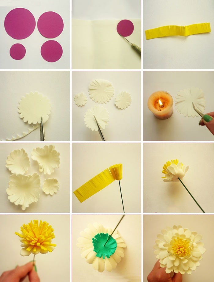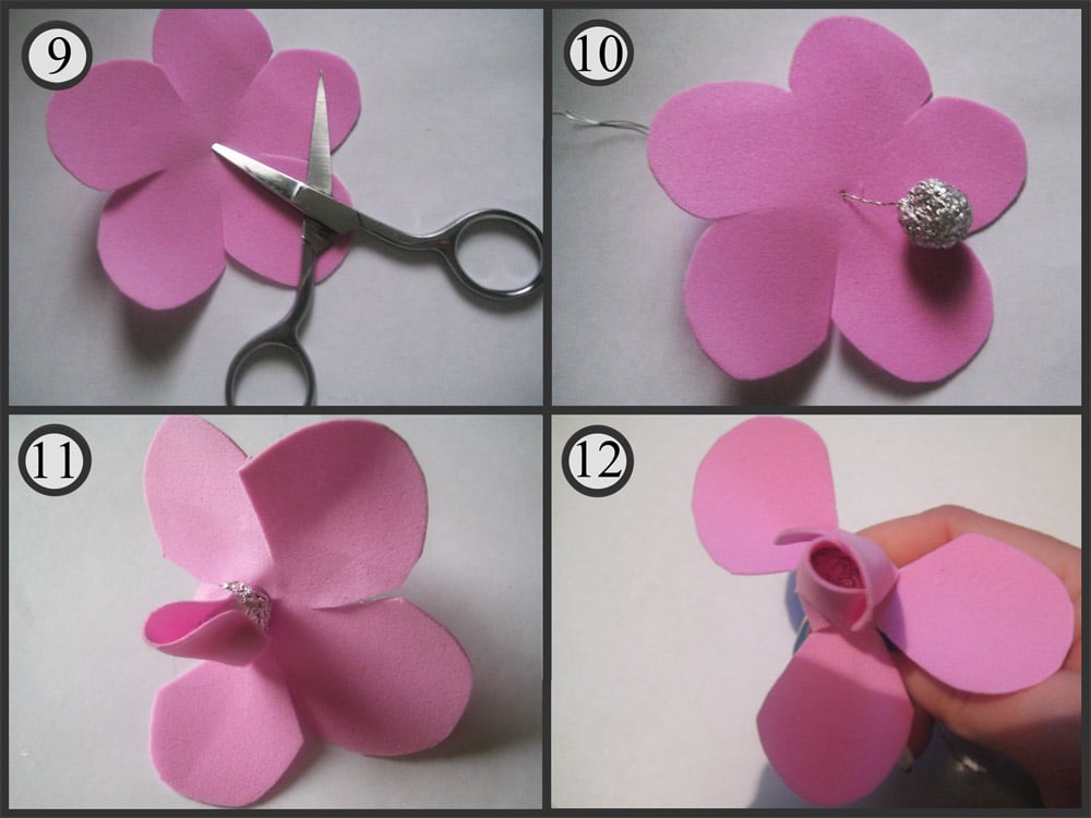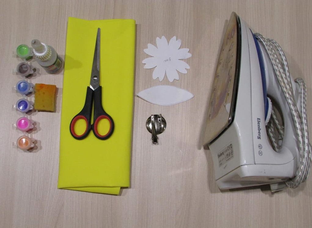 For work, take: sheets of fomyran, a drawing of the parts to be made, scissors, a glue gun, an iron (to create the shape of the petals), as well as a hole punch (for smaller parts).