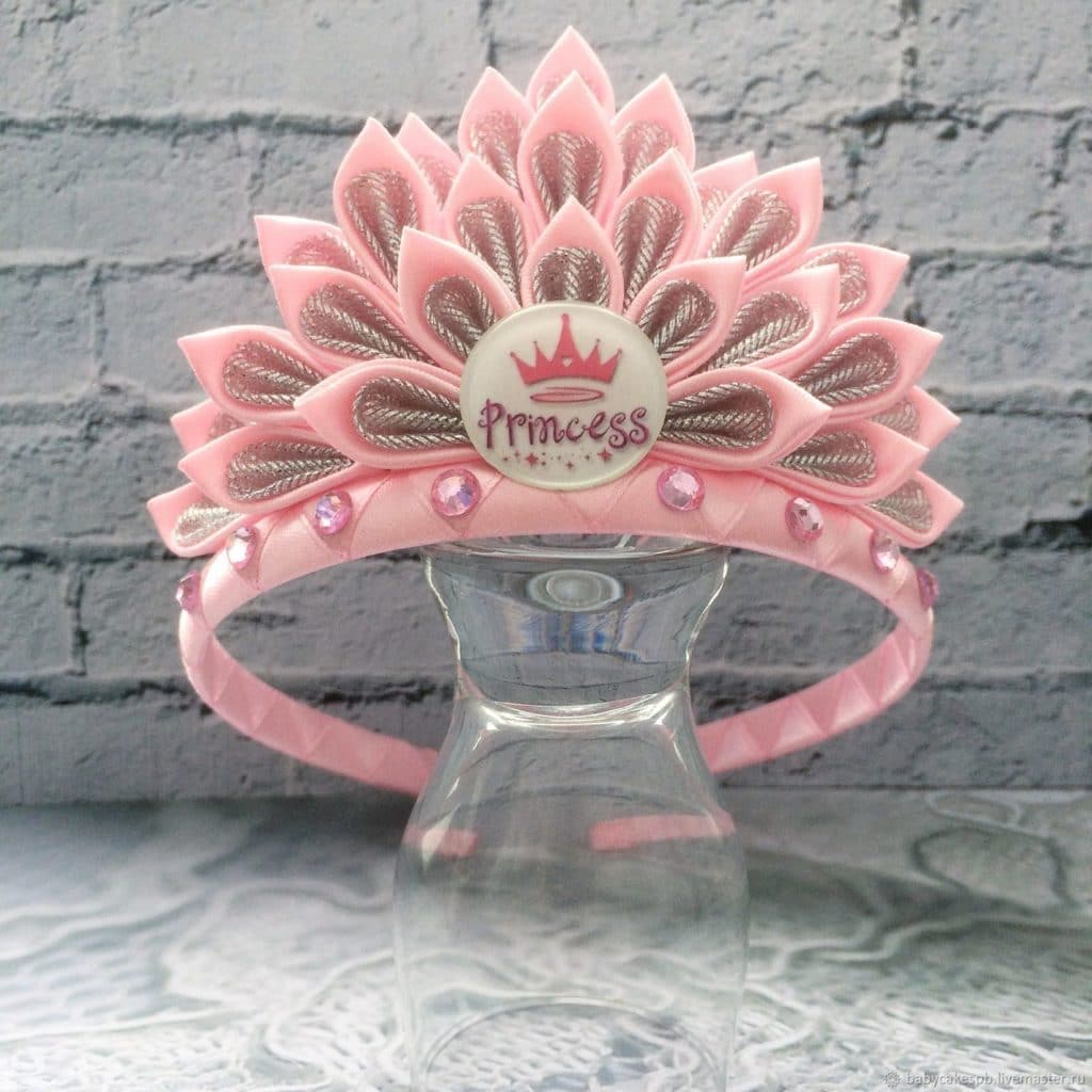 You can adjust the volume and height of the flower by taking a narrow or wide ribbon. Such flowers will perfectly decorate any rim or elastic band, and also look interesting and gently as decoration on a bunch. They are attached to the felt circle with glue, and then to the hairpin or elastic, as well as the rim.