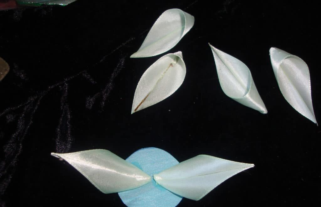 When the edges of the fabric are processed, we fold our petals, giving them the desired shape, and solder the edges over the fire.