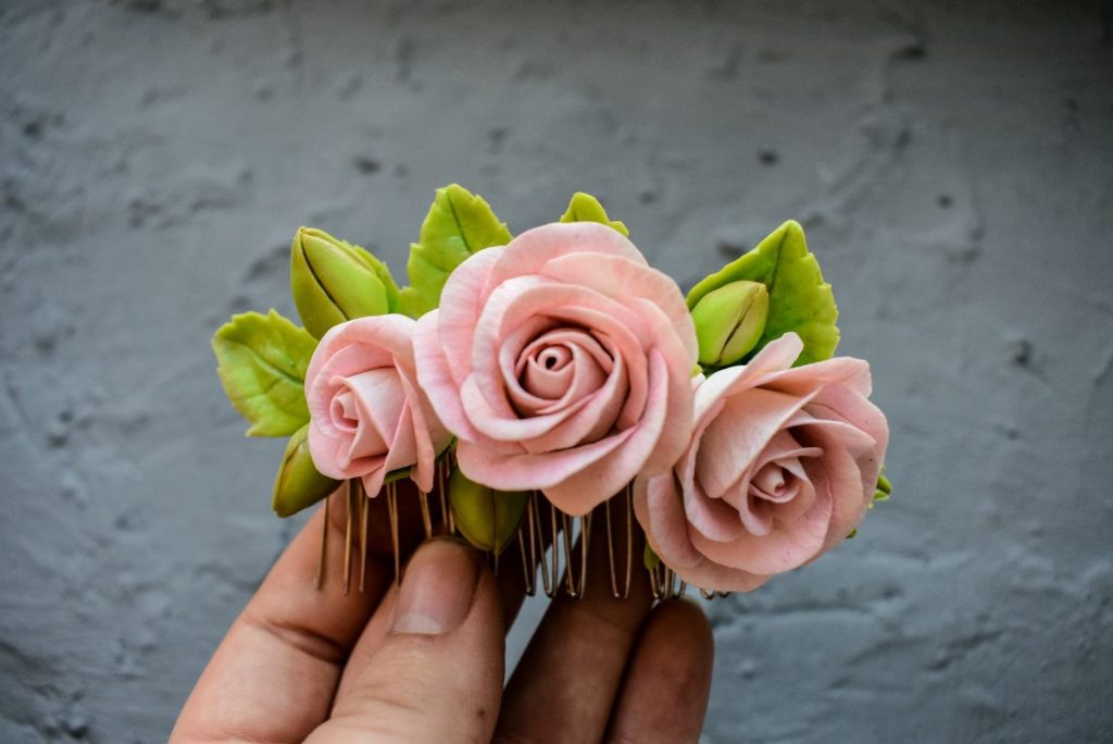 Such flowers will be an amazing decoration for a hairpin or comb, as well as a hoop.