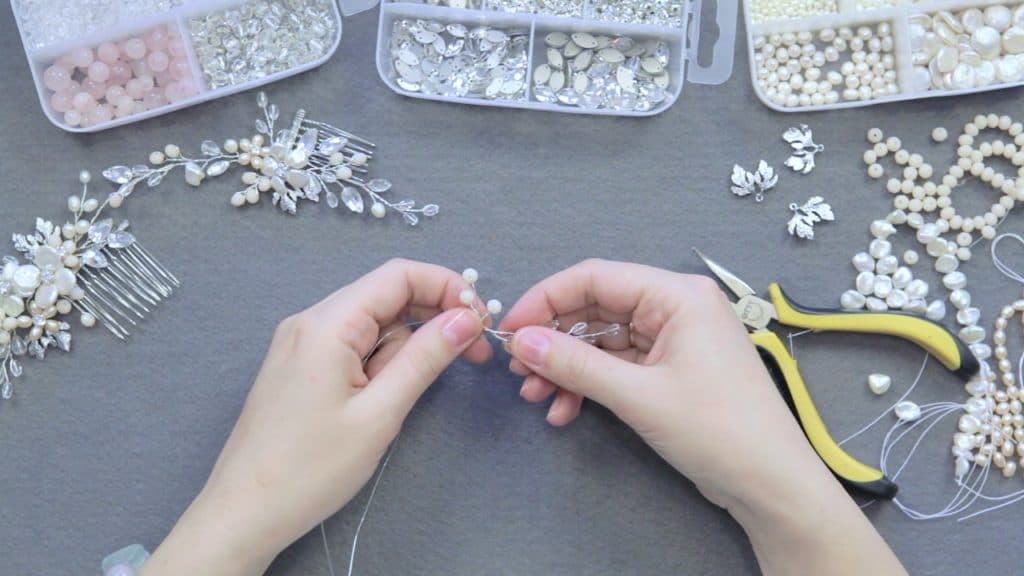 And putting on her beads to create the design you like of a particular model. But for such decoration you need a hairpin for attaching to the hair.