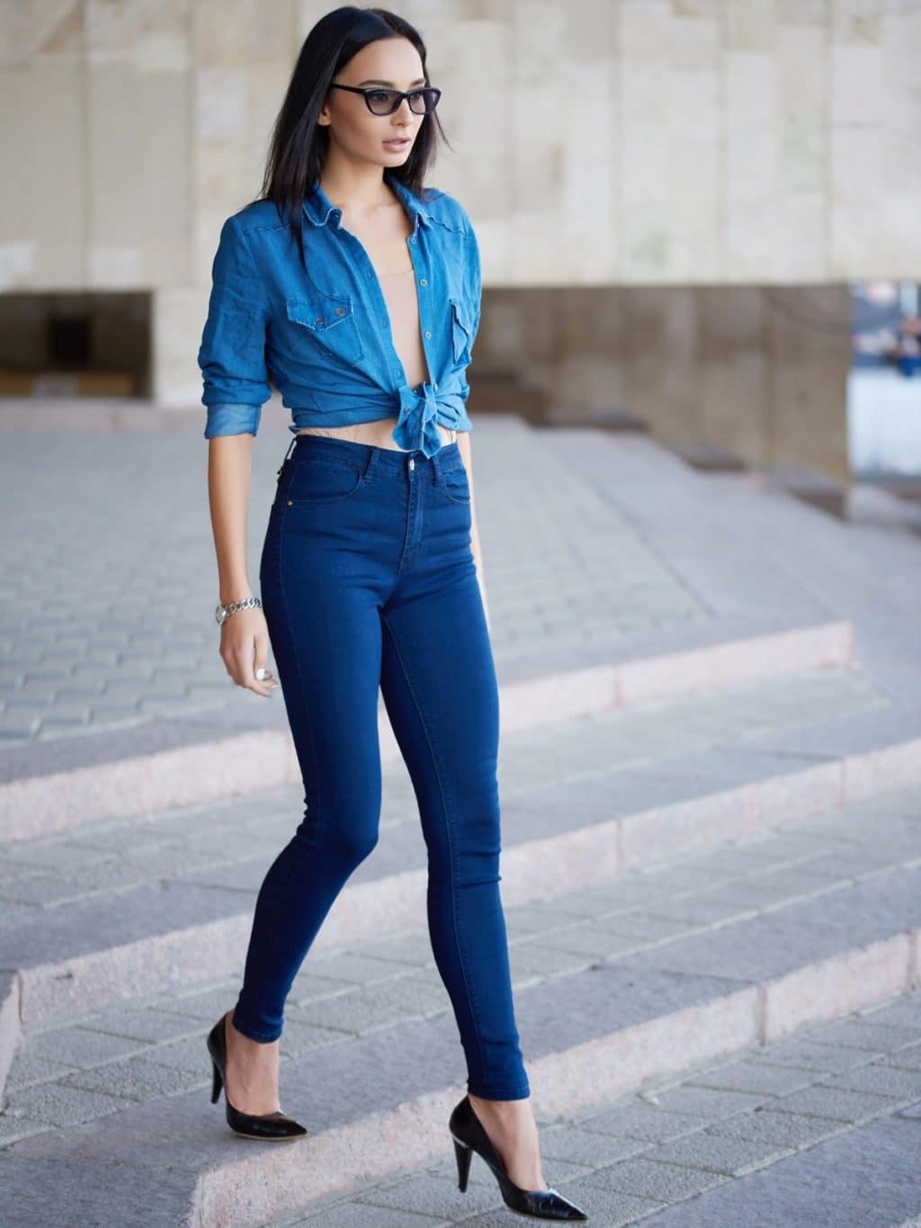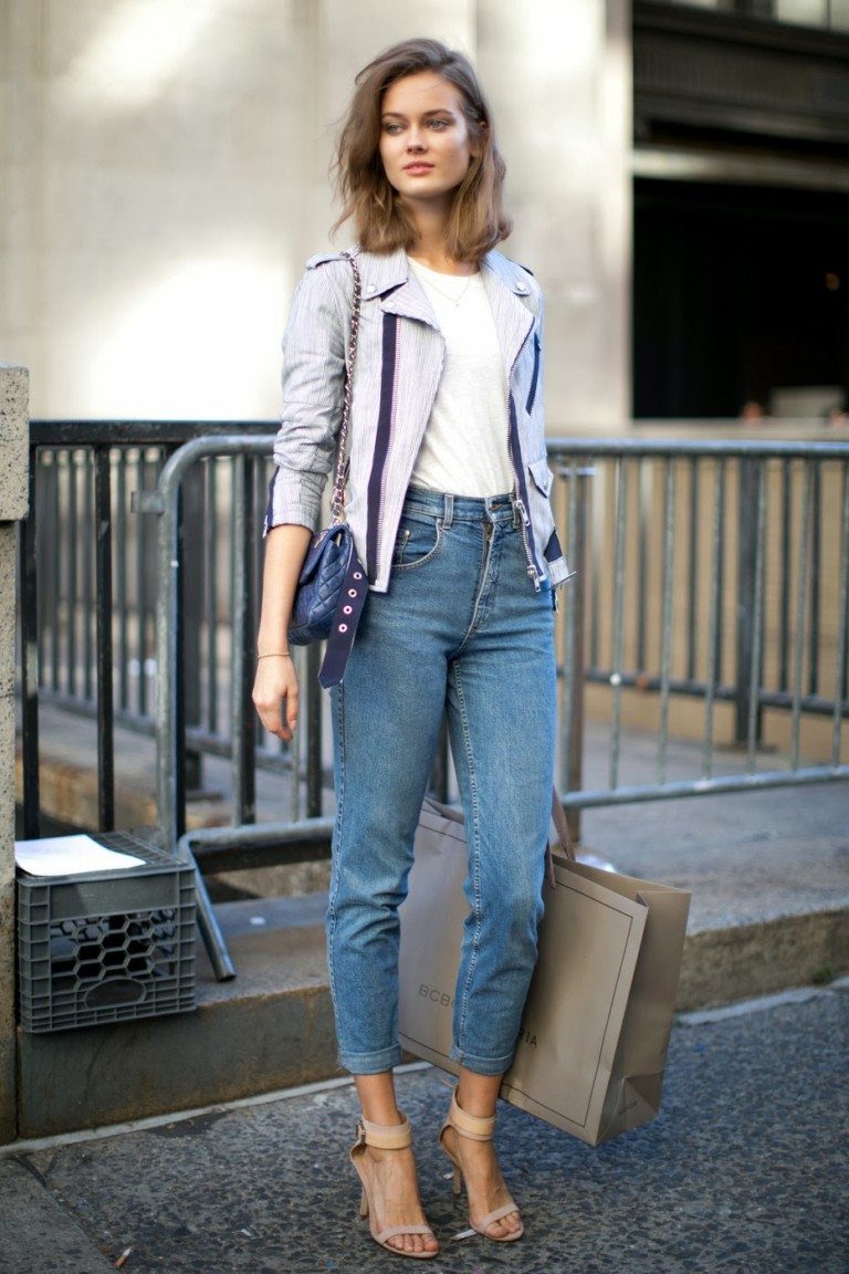 But as a style, you can pick up any jeans from skinny skinny, to simple banana jeans. The same applies to the selection of trousers: skinny models, palazzo trousers, as well as shortened options.