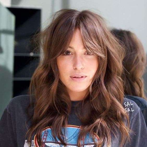 Long bangs will be in first place in popularity not only in 2024, but also in 2024. It helps to hide face imperfections like no other bangs. A long bang can visually soften your features, where wide cheekbones, a massive forehead, and also a sharp chin will not seem so angular.