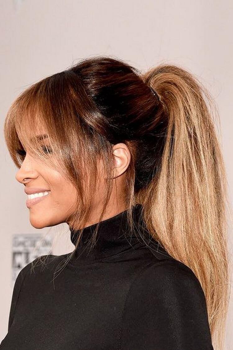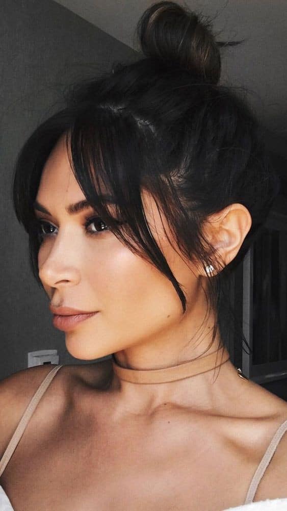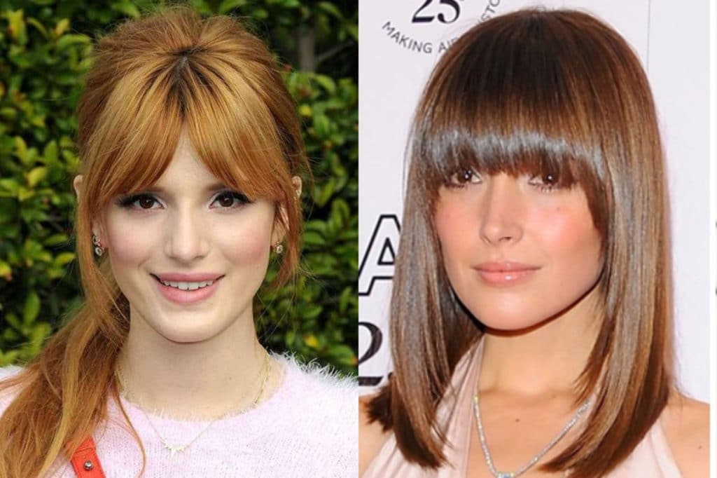 Such a bang may have an elongated appearance, and may be shorter. In any variation, it looks stylish, fashionable and fresh.