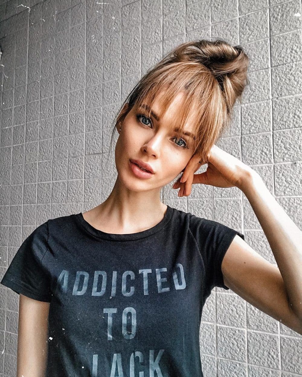 Such a bang is a very bold choice. She is perfect for those girls who are accustomed to stand out from the crowd. In the current 2024, short bangs were presented by models at Fashion Week, so many fashionistas can choose this trend for the whole current year with a pure heart.