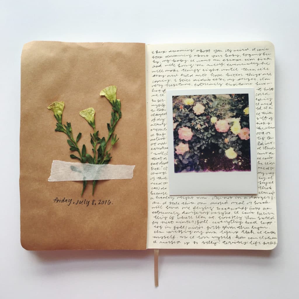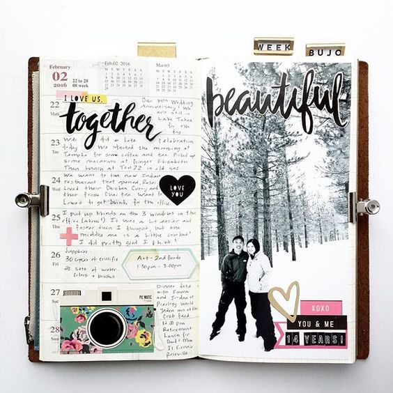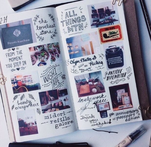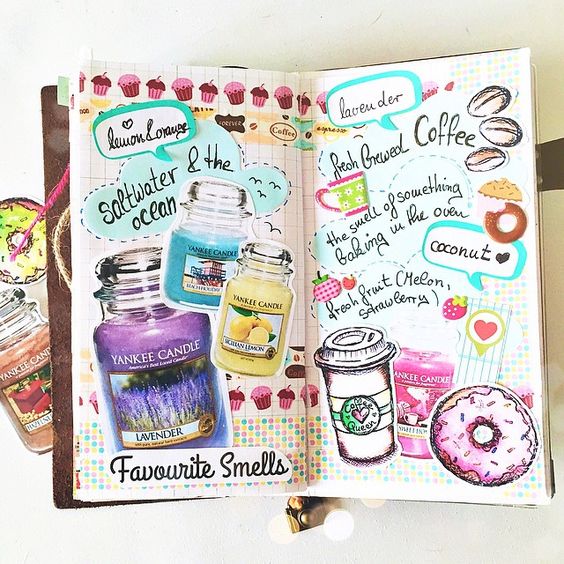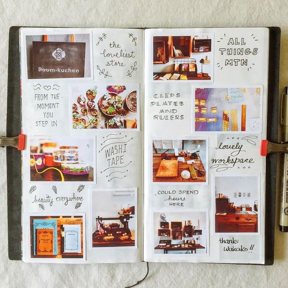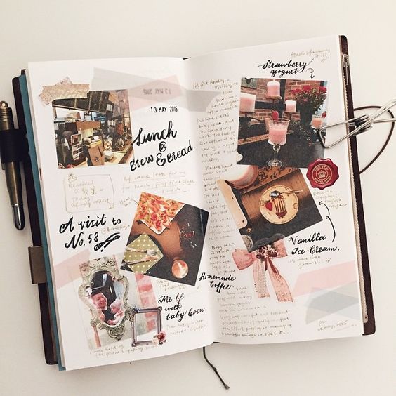 Do not stop at photos and pictures, you can even put labels of your favorite sweets in the diary, stick dried flower buds, and also use any fabric to decorate your pages.