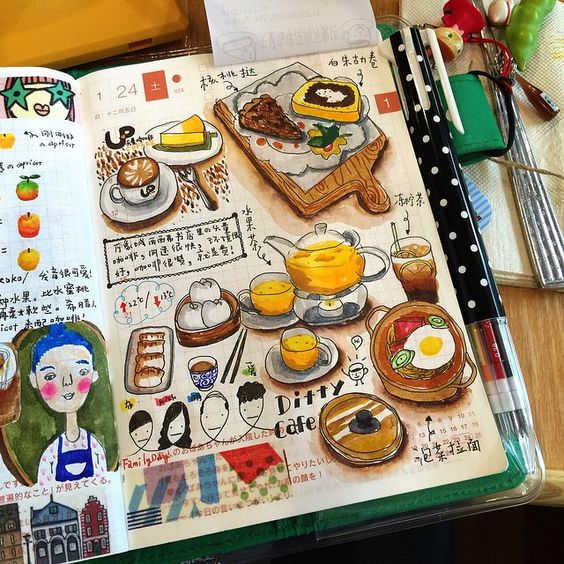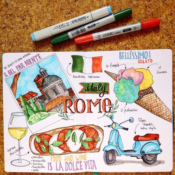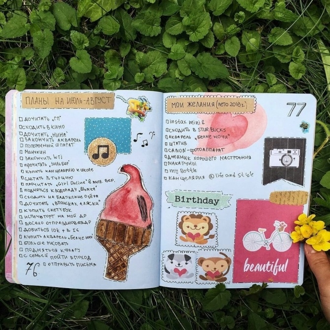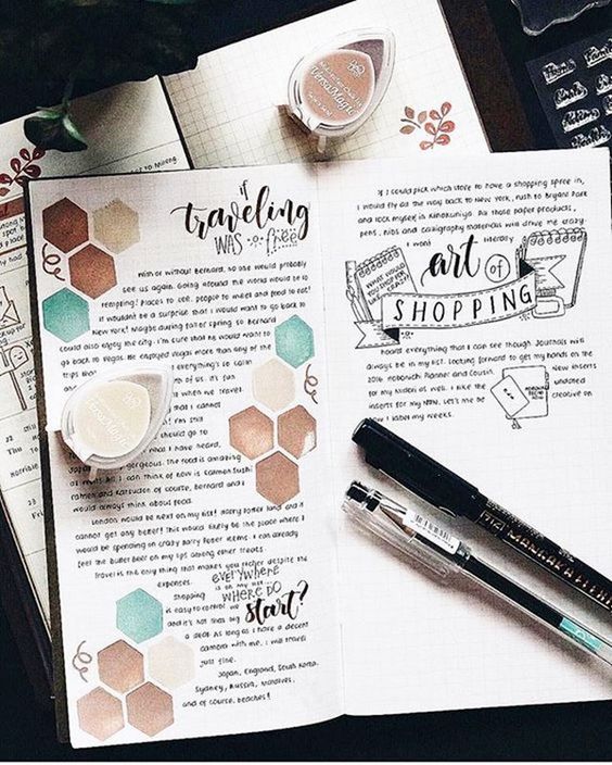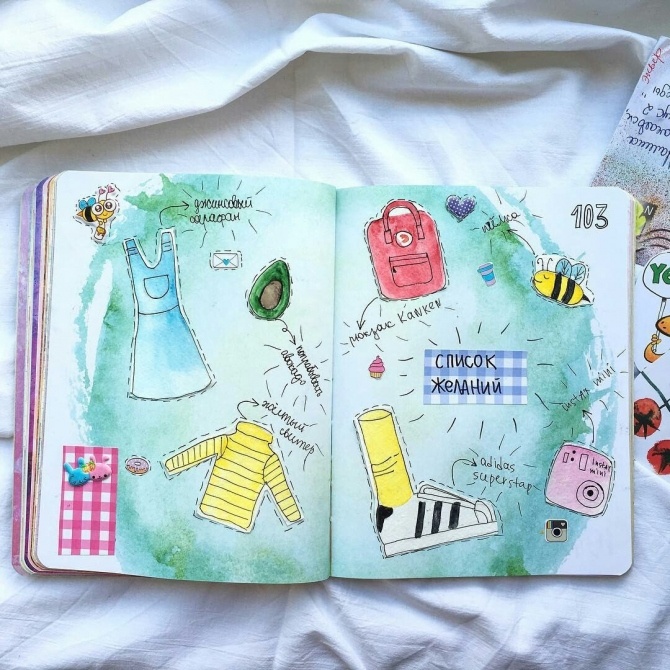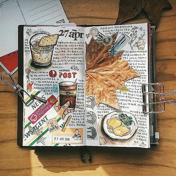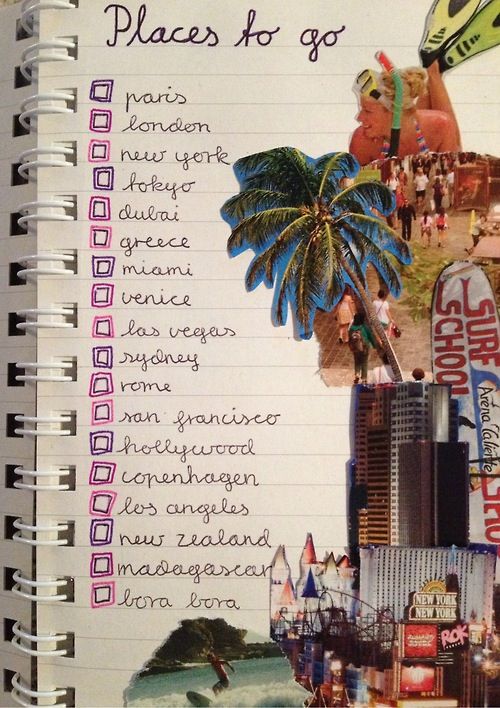 The topic of travel should occupy a special page for you. It is interesting to write down your first feelings when you visit a city or country. You can even sketch these feelings on the pages.