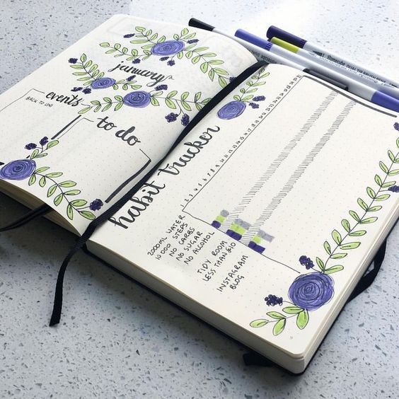 As ideas for design, you can use floral patterns that will decorate your pages. If you have a bad mood and the event was not joyful, then make the flowers dark, and if cheerful and good, bright and colorful.