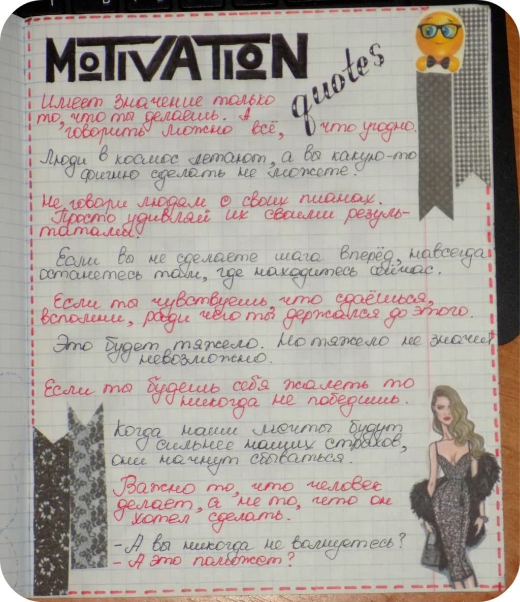 Most importantly, remember that your diary is yourself. You do not need to fill it in any clear pattern, as well as paint with bright colors or markers. After all, a personal diary can belong not only to a teenage girl, but also to a respectable lady, a business shark.