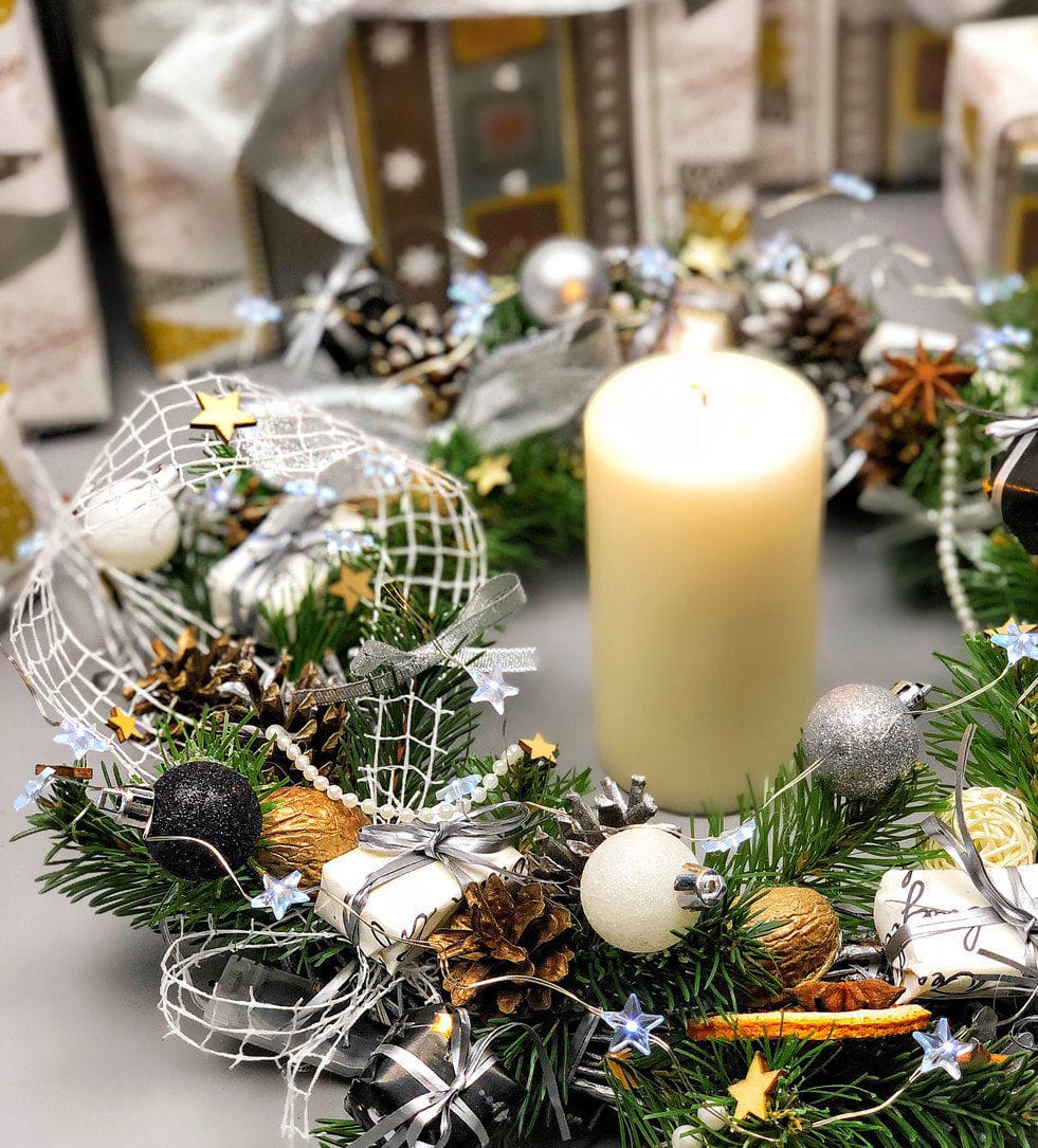 A Christmas wreath is often presented with 4 candles, and elegant candles are burned to disperse and ward off any evil that was or could have come to the house.