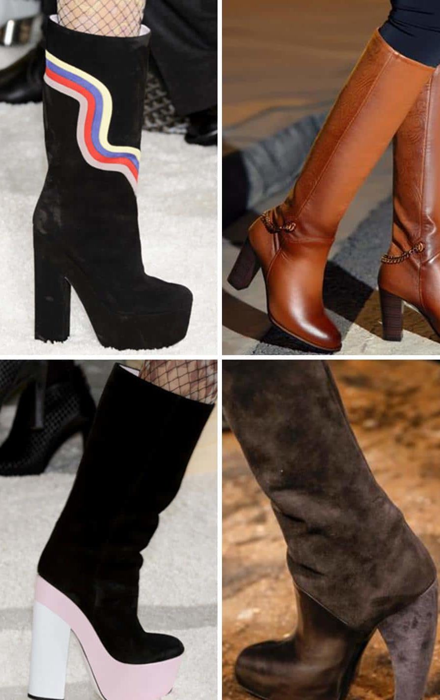 Fashion for shoes in the style of the 70s returns to us in the form of autumn shoes with a massive heel or platform. In particular, these are boots made of genuine leather, which have a variety of straps or rivets. But there are also other more concise models.